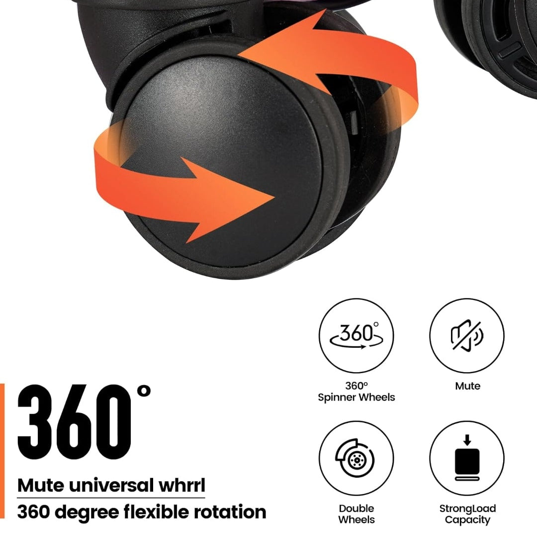 360° double spinner wheels for silent, smooth motion