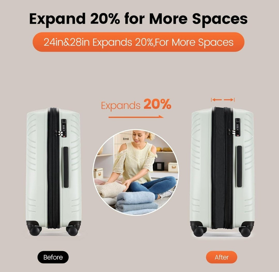 The smooth 360° double spinner wheels, TSA combination lock, and expandable zipper section make it the perfect companion for flights, road trips, or extended stays.