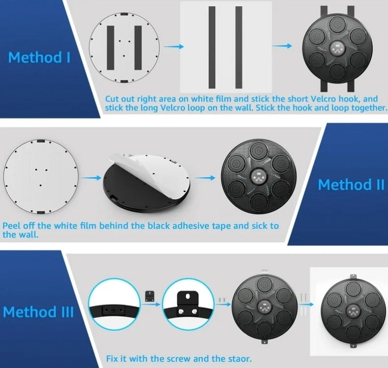 Bring the gym home with this Smart Music Boxing Trainer, designed to boost your reflexes, cardio, and coordination through rhythm-based workouts. Wall-mountable and Bluetooth-enabled, it syncs with your favorite music or fitness app so you can punch to the beat, track your progress, and challenge yourself with light-up targets.